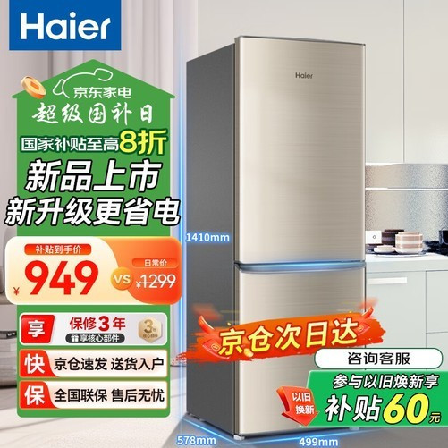 海尔HaierBCD-180TMPS直冷双门冰箱,180L大容量设计,冷藏室122L、冷冻室58L,并配备36L软冷冻变温室,满足多样食材储存需求,是小户型家庭的理想选择。采用三循环制冷系统,有效减少串味问题,保持食物原味与新鲜;深冷速冻功能可达-40℃以下,快速锁住食材营养,同时具备除菌净味功能,保障储存环境的清洁卫生。冰箱采用电脑控温技术,温度控制更加精准稳定,运行噪音低至38dB(A),安静不打扰日常生活。外观方面,炫金面板搭配钣金材质,坚固耐用且时尚美观,简约设计轻松融入各种家居风格。此外,日耗电量仅为0.69kW·h/24h,符合三级能效标准,节能环保。当前京东活动价仅需1249元,叠加满减及优惠券后,到手价低至909元,性价比超高,非常适合注重保鲜效果和美观外观的消费者选购!